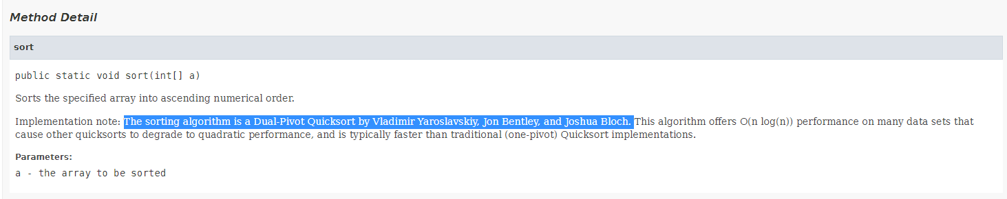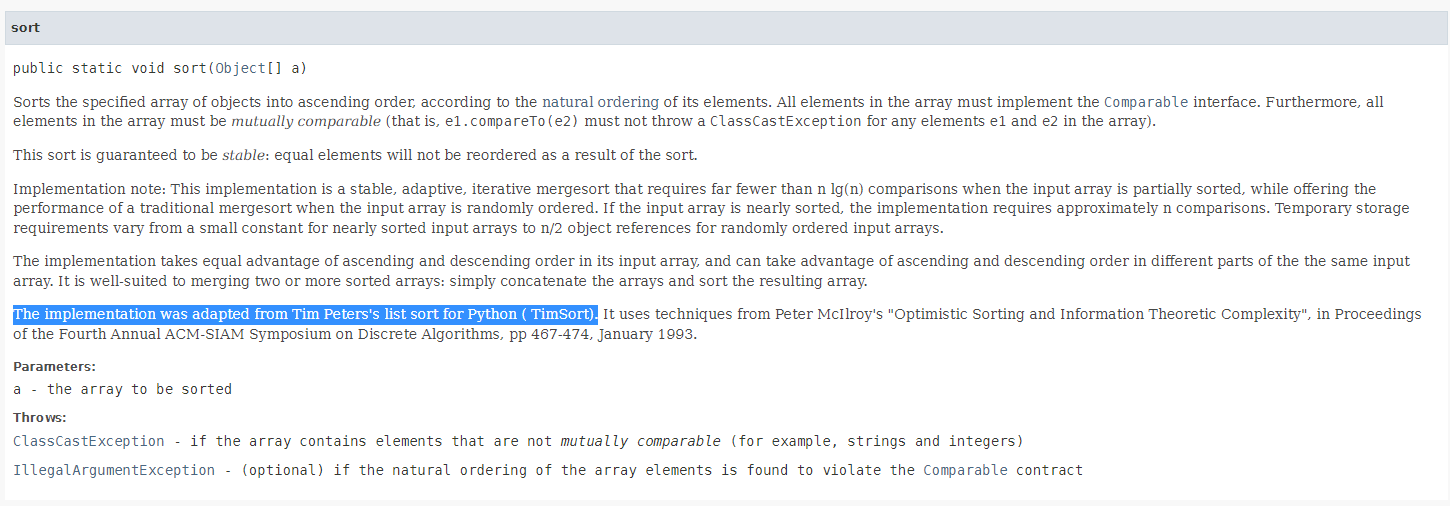 공식 문서에서 arrays.sort()를 찾아보면 관련내용이 나오는데